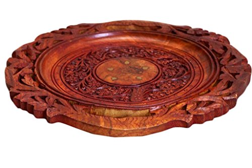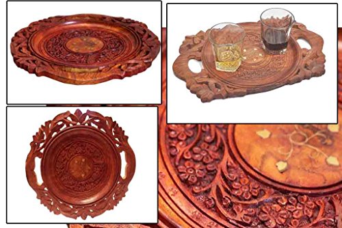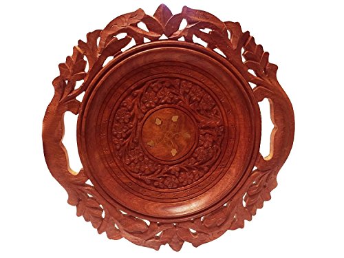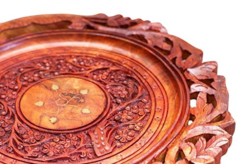 Christmas or Thanks Giving Day Gift, Wooden Beautiful Handmade Serving Round Tray with Flower Design Serving Tray, Serving Trays for Parties Serve Food, Coffee, Tea, Snacks - 12.5 X 12.5 Inch
