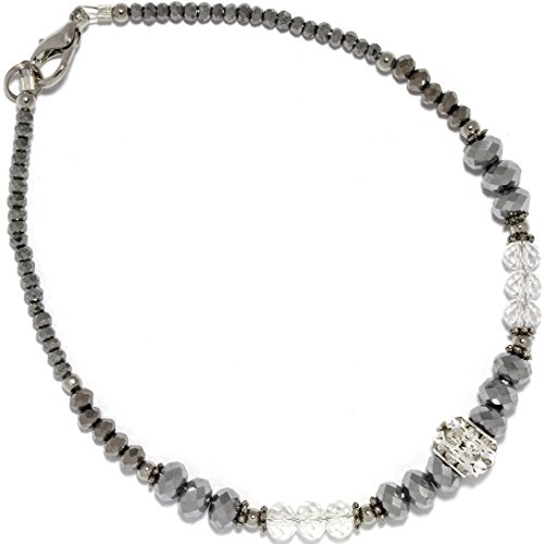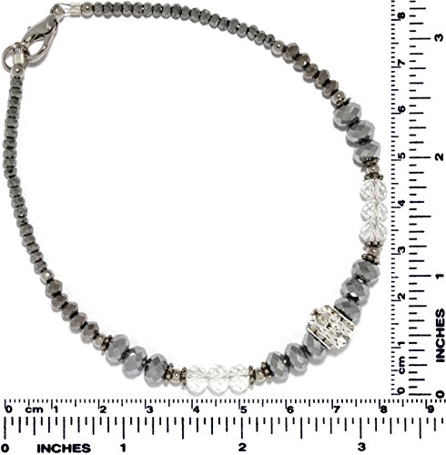 -. Title : AnsonsImages 10" Inches Anklet Bracelet Crystal Cut Beads Silver Gray Clear