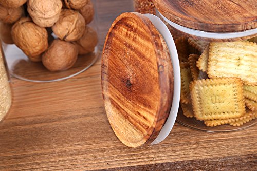 AUYE Glass Storage Jar,Coffee Bean & Kitchen food Container with Natural High grade wood Lid and Silicone Seal Ring (12 Ounce)