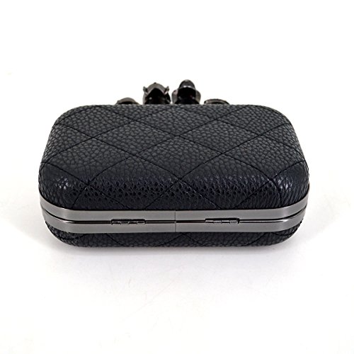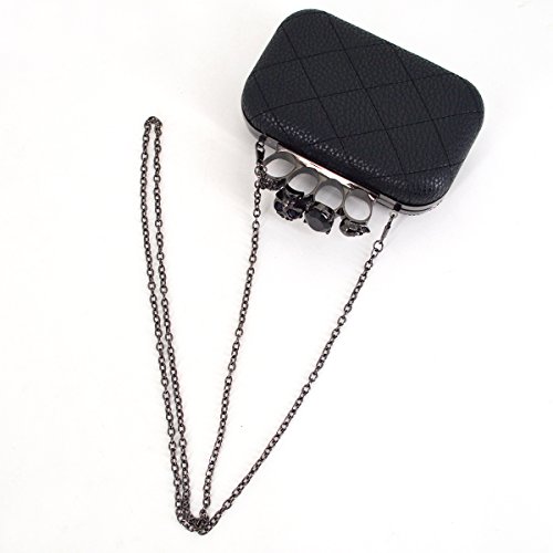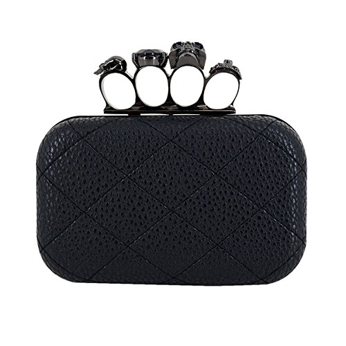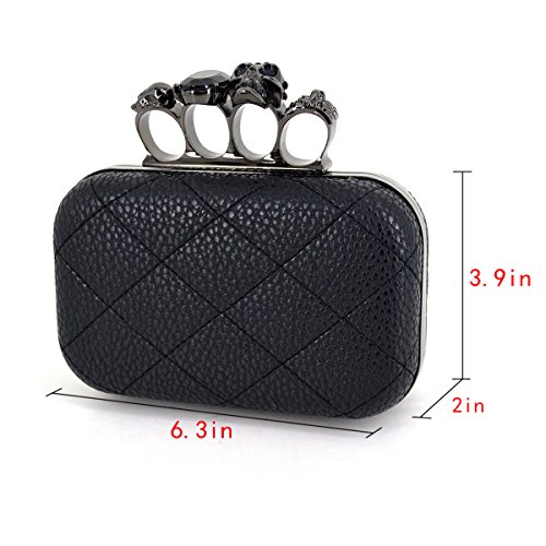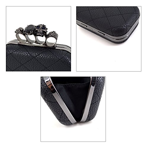 Aisa Womens Quilted PU Leather Skull Cross Bone Purses Kisslock Crystal Evening Clutch Shoulder Bags Black