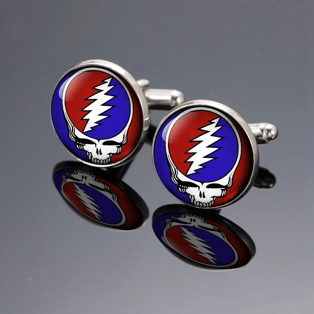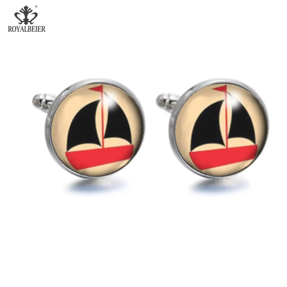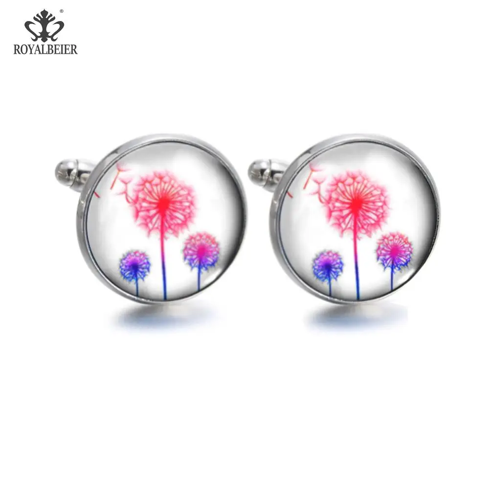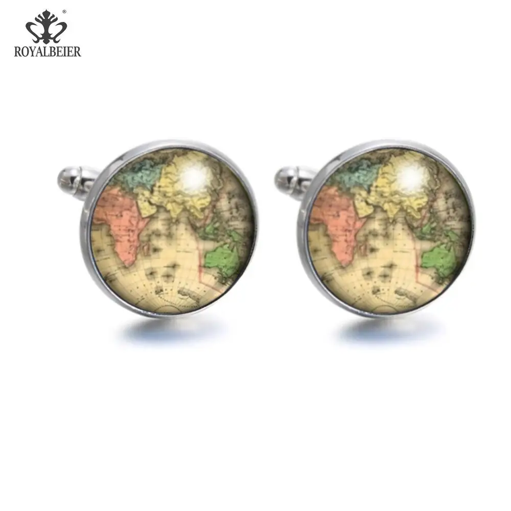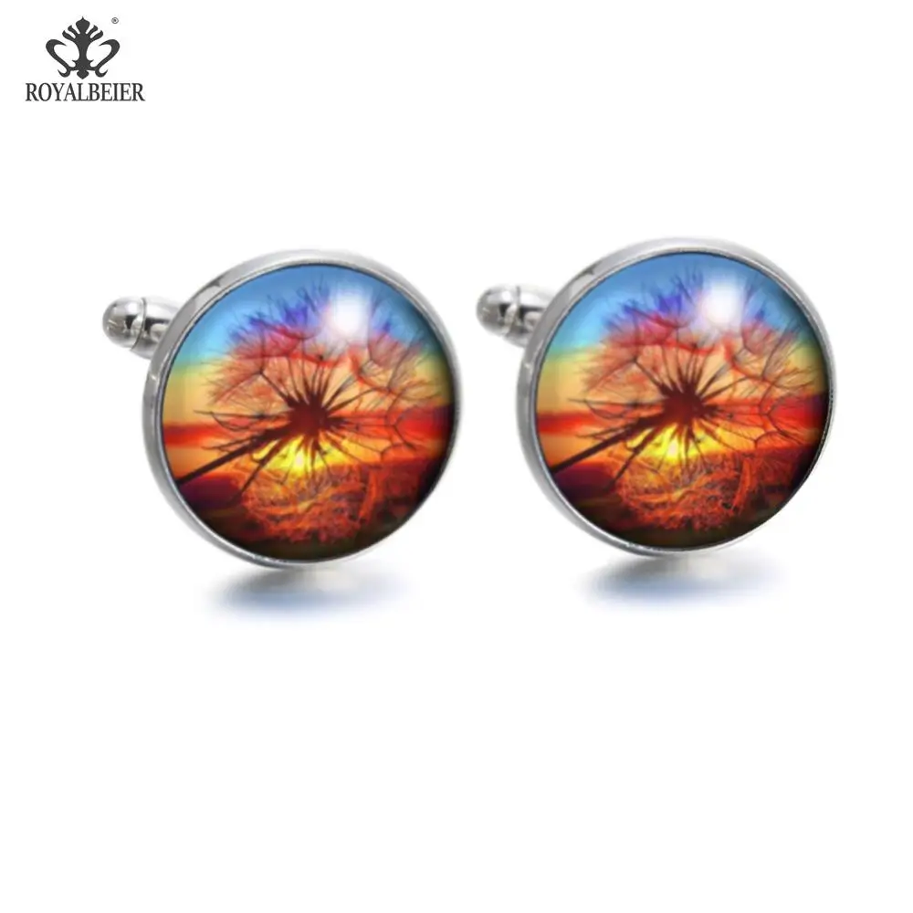 Hot:Handmade Vintage Yellow Vintage round glass cufflinks
