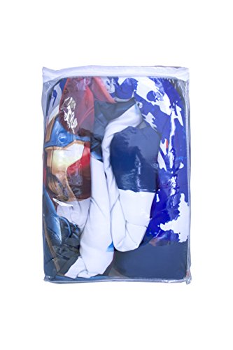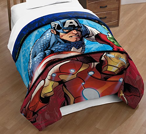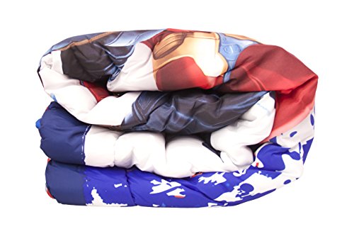 -. Binding : Misc. -. Brand : Marvel -. Feature : Dimensions: 86L x 64W in. / 100% polyester fabric / 100% polyester fill / Blue Captain America design / Reversible comforter -. Label : Jay Franco & Sons Inc -. Manufacturer : Jay Franco & Sons Inc -. MPN : JF27730HYML -. PackageQuantity : 1 -. PartNumber : JF27730HYML -. ProductGroup : Home -. ProductTypeName : HOME -. Publisher : Jay Franco & Sons Inc -. Studio : Jay Franco & Sons Inc -. Title : Marvel Avengers 2 Age of Ultron Reversible Comforter