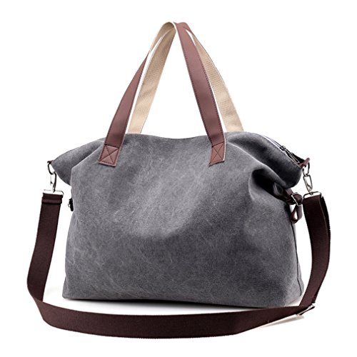 Lonson Big Canvas Shoulder Bag Weekend Travel Bag Handle Handbag Tote Bag