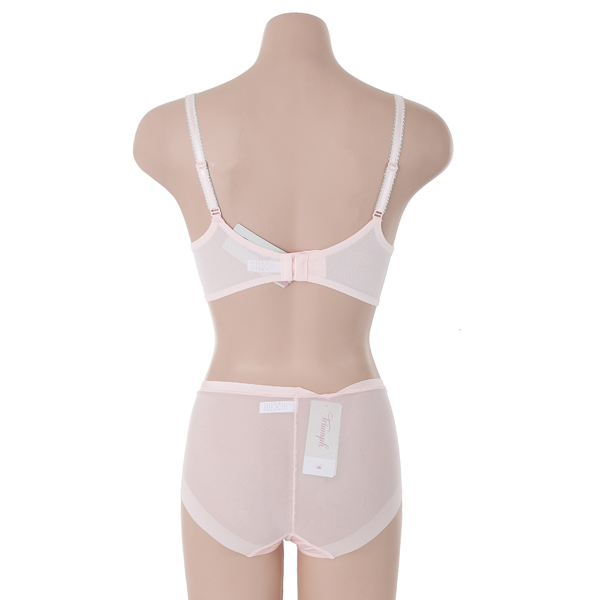 중심이 낮은 딥브이 브라로 전중심 압박을 최소화 했으며, L자형 와이어가 가슴을 가운데로 더욱 더 모아줍니다.