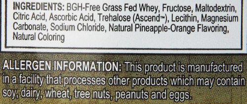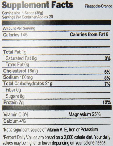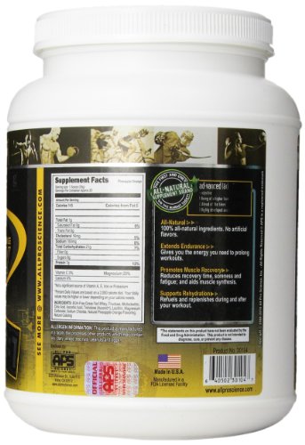-. Binding : Health and Beauty -. Brand : All Pro Science -. EAN : 0884102326424 -. Feature : Supports Rehydrations / Promotes Muscle Recovery / Refreshing to drink. / 7 grams of protein per serving. / Vitamin and Mineral Fortified. -. IsAdultProduct : 0 -. Label : All Pro Science -. Manufacturer : All Pro Science -. MPN : 14887 -. NumberOfItems : 1 -. PackageQuantity : 1 -. PartNumber : 14887 -. ProductGroup : Health and Beauty -. ProductTypeName : HEALTH_PERSONAL_CARE -. PublicationDate : 2010-12-06 -. Publisher : All Pro Science -. ReleaseDate : 2010-12-06 -. Studio : All Pro Science -. Title : All Pro Science Recovery, Pineapple Orange, 25 oz (700-Grams) -. UPC : 884102326424