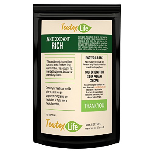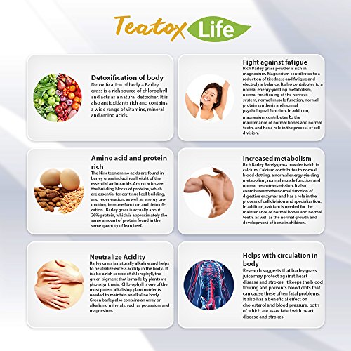 Teatox Life Barley Grass Powder for Juice Organic Barley Green Superfood, 120 grams of certified organic pesticide and gluten free raw green vegan super food
