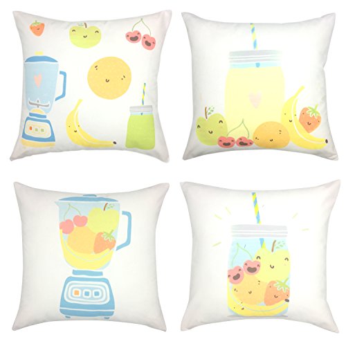 YOUR SMILE Cute Cotton Linen Decorative Throw Pillow Case Cushion Cover Pillowcase for kids Sofa 18 x 18 Inch , Set of 4