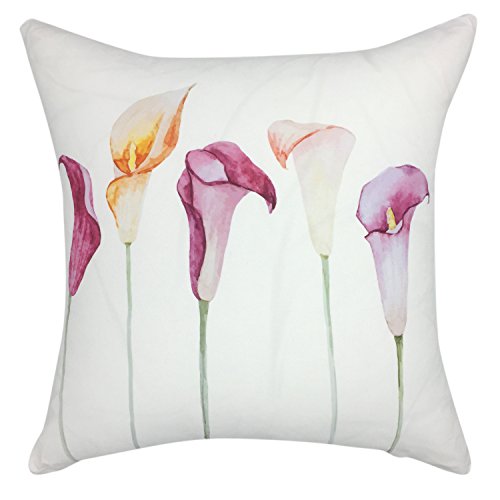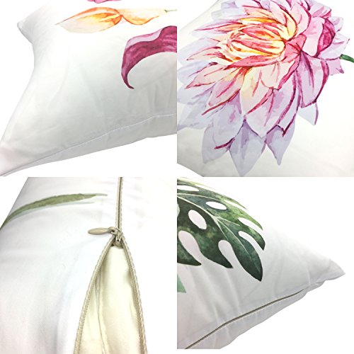 YOUR SMILE Floral Farmhouse White Cotton Linen Decorative Throw Pillow Case Cushion Cover Pillowcase for Sofa 18 x 18 Inch , Set of 4 , Flower