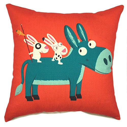 YOUR SMILE Cute Cartoon Anamal Cotton Linen Decorative Throw Pillow Case Cushion Cover Pillowcase for Sofa 18 x 18 Inch , Set of 4