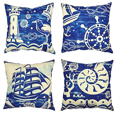 YOUR SMILE Nautical Cotton Linen Decorative Throw Pillow Case Cushion Cover Pillowcase for Sofa 18 x 18 Inch , Set of 4