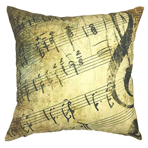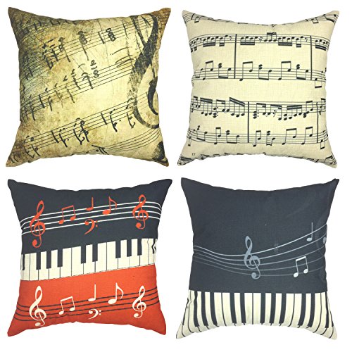 YOUR SMILE 4pcs Cotton Linen Sofa Home Decor Design Throw Pillow Case Cushion Covers Square 18 Inch (Musical Note)