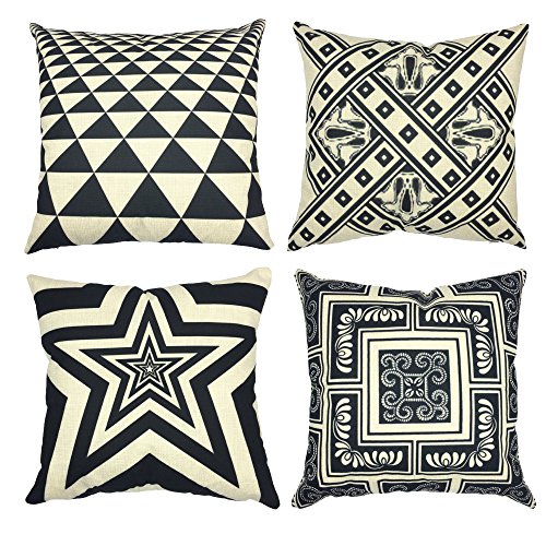 YOUR SMILE 4pcs Cotton Linen Sofa Home Decor Design Throw Pillow Case Cushion Covers Square 18 Inch (Star/Square/Triangle/Chain)