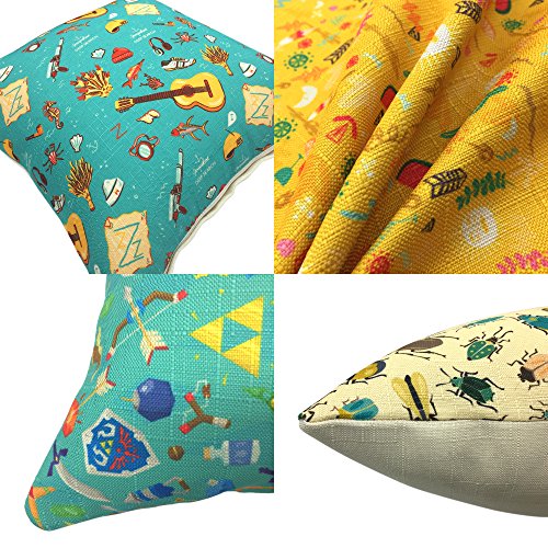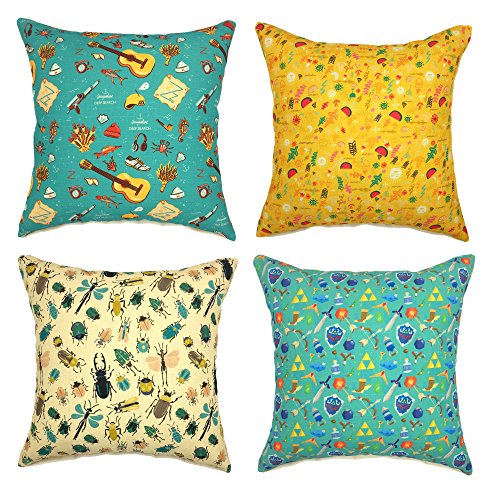 YOUR SMILE 4pcs Cotton Linen Sofa Home Decor Design Throw Pillow Case Cushion Covers Square 18x18 Inch (Music/Fruit/Insect/Weapon)