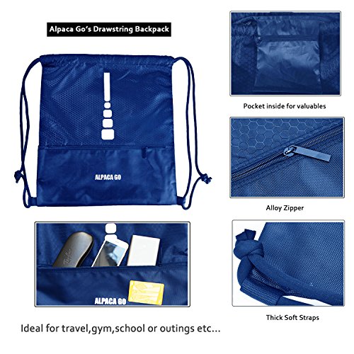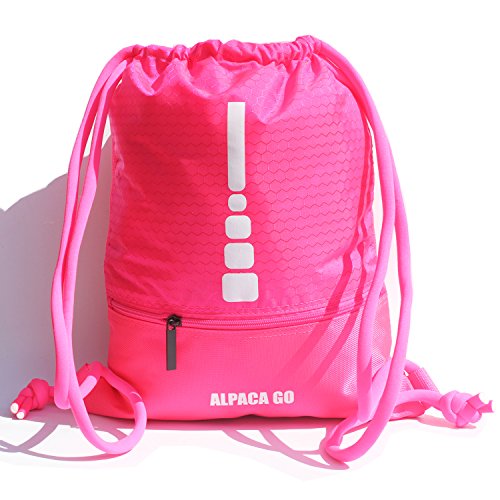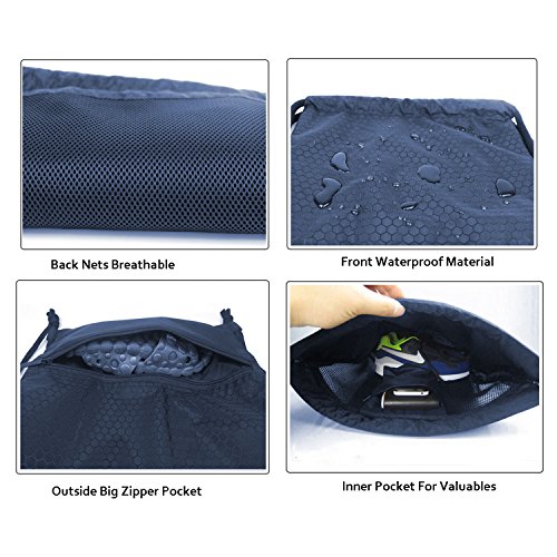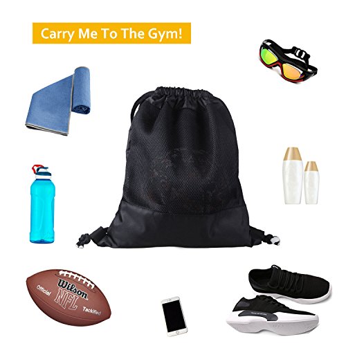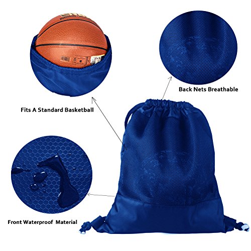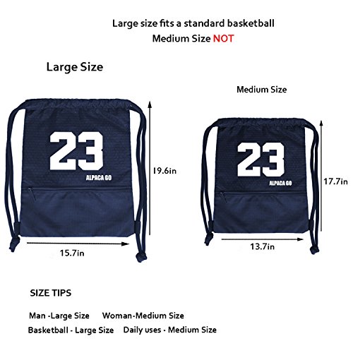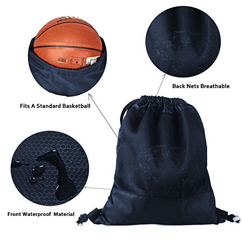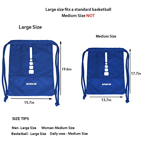 1.L Size Large enough to fit a standard size basketball soccer ball etc, or you would like a medium one. 2.Ventilate mesh is a much which can make your gym things don't get too smelly 3.The pockets of this bag make for good organization of all your items. And zippers keep things closed . 4.Super Durable light waterproof material won't add burden to your carrying like other backpacks 5.Packable, easy to store when not in use.