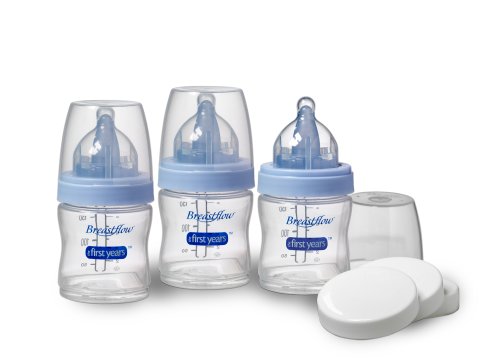 -. Binding : Baby Product -. Brand : The First Years -. Feature : 5 ounce bottles, 3 pack / Bisphenol BPA free / Double nipple system requires both suction and compression / Baby controls the flow of milk / Ideal for nursing moms who would like to introduce the bottle -. Label : The First Years -. Manufacturer : The First Years -. Model : Breastflow Bishenol Free Bottle PARENT -. ProductGroup : Baby Product -. ProductTypeName : BABY_PRODUCT -. Publisher : The First Years -. Studio : The First Years -. Title : The First Years Breastflow BPA Free Bottle 3-Pack