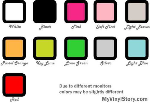 -. Feature : WARNING: Purchase only from My Vinyl Story. Beware of counterfeiters. / Decal size: 42x15 inches / Includes detailed application instructions / Default: Black - ALSO HAVE: White, Red, Silver, Lime Green, Key Lime, Pastel Orange, Light Blue, Pink, Soft Pink, Light Brown, Yellow, Light Purple PLEASE INFORM / Removable without leaving sticky residue