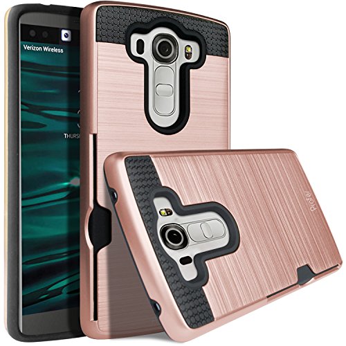 LG V10 Case,Profer [Heavy Duty][ Drop Protection] Dual Layer Armor Holster Defender Full Body Protective Hybrid Wallet Case Card Slots cover for LG V10 (2015)(Rose Gold)