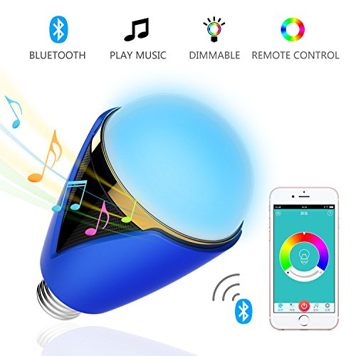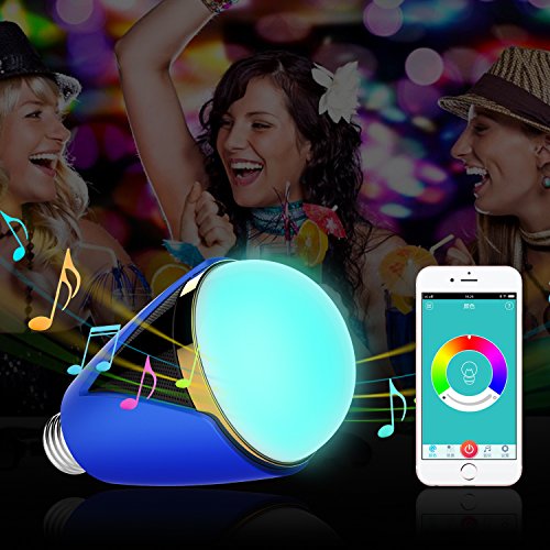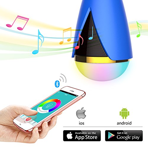Halloween Bluetooth LED Light Bulb - Smartphone Remote control Multicolored- 5W E27 music Bulb Wireless Stereo Speaker For Halloween Parties And Christmas Time(Blue)
