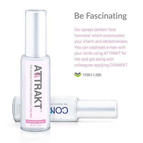 Attrakt for her will maximize your charm and attraction in male eyes. You will notice that sterner sex eagerly starts conversation and supports it with you. See how pliant males become. Be ready to catch glances from men every time you will pass them by. Ultimate body spray formula to attract men.