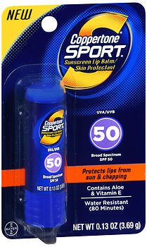 Coppertone Sport Sunscreen LipBalm, 0.13 oz, SPF 50 (Pack of 4)
