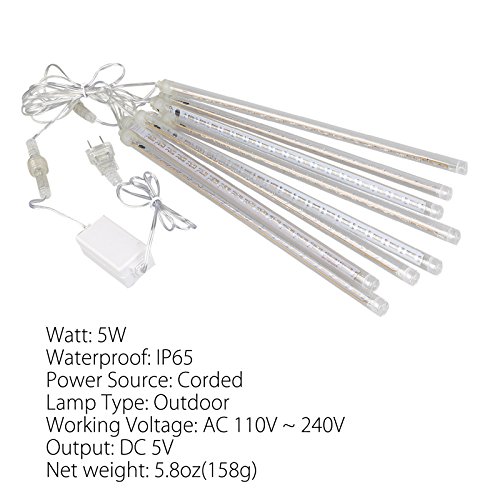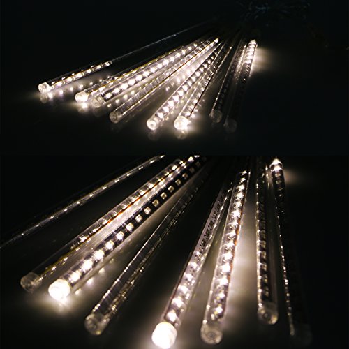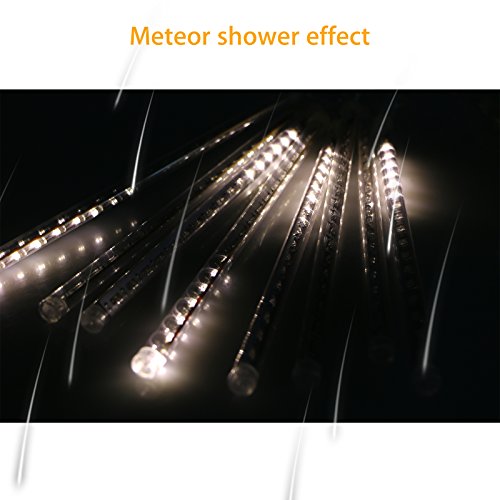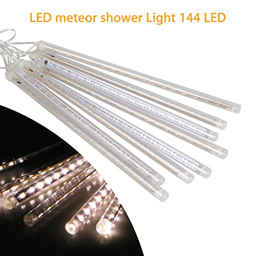LinkStyle LED Falling Rain Lights with 30cm 8 Tube 144 LEDs, Meteor Shower Light, Falling Rain Drop , Icicle String Lights for Holiday Party Wedding Tree (White)