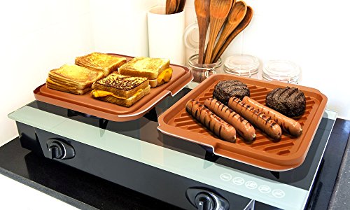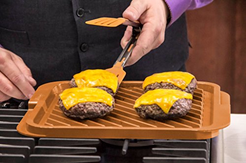 Studio : Gotham Steel Publisher : Gotham Steel Binding : Kitchen Product Description The Gotham Steel ceramic and titanium nonstick double grill features a double-sided cooking surface for twice the utility. It has a grill on one side and griddle on the other. Grill steaks, fish, hot dogs, chicken and use the griddle to fry bacon or eggs. The groove on the sides catches all the grease for later cleanup. Its high-heat threshold allows you to sear perfectly browned steaks! everything just slides right off, even burnt chocolate and cheese. Food flavor is not altered when cooking tomato-based or any acidic food products thanks to the ceramic component! the nonstick surface cleans easy! it's versatile - for stovetop cooking or baking! it is rust-proof all over. The coating doesn't peel off with constant usage and washing. 0