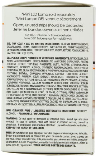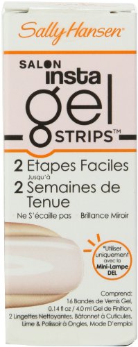 Salon insta-gel strips. 2 easy steps. Up to 2 week wear. Chip resistant. Mirror shine. Must use with mini LED lamp - sold separately . Will not damage nails. Apply color. Apply top coat. Cure under mini LED lamp (sold separately).Feature