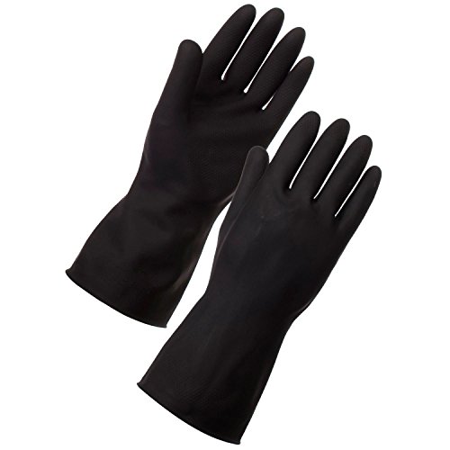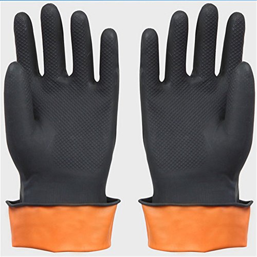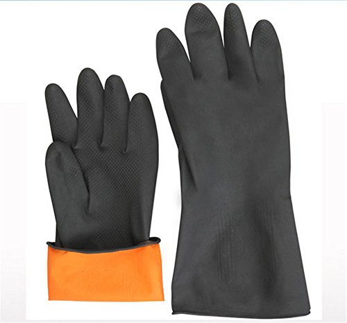 COJOY Chemical Resistant Gloves Safety Work Cleaning Protective Natural Latex Industrial Gloves 12" Length Black 3 Pairs