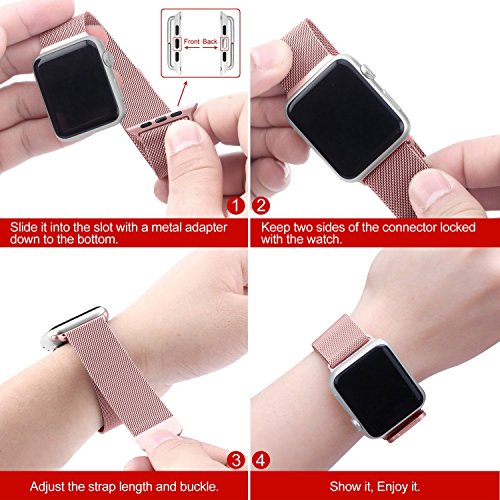 Powered by UMTele exclusive technology. Unique magnet clasp design, no buckle needed, just easily stick and lock your iwatch band, fits wrist length 5.70"-10.43" (145mm-265mm)