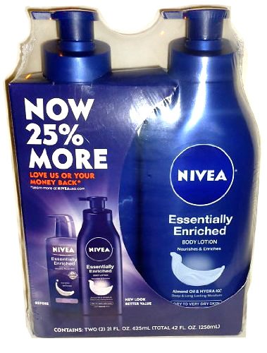 Binding : Misc. Product Description Nivea essentially Enriched Lotion is ideal for dry to very dry skin. It features Hydra IQ technology that supports skin's own hydration network with natural sea minerals and almond oil. Used daily, you'll enjoy non-stop moisture that lasts more than 24 hours. 0