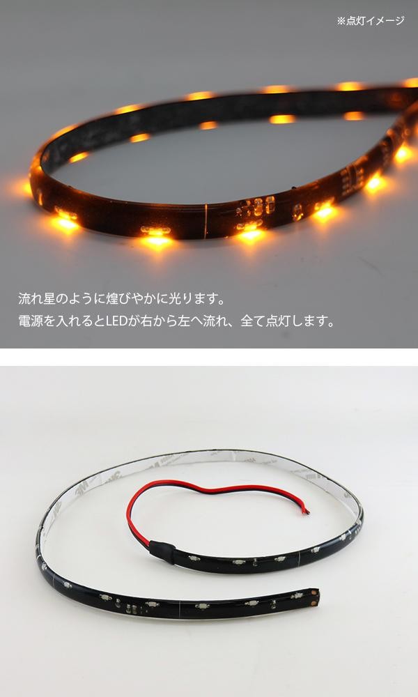 電源を入れると一度流れつきっぱなしになります。ウィンカーに接続すると外車、近々の日本車に多い「シーケンシャルウインカー」風になります。 |