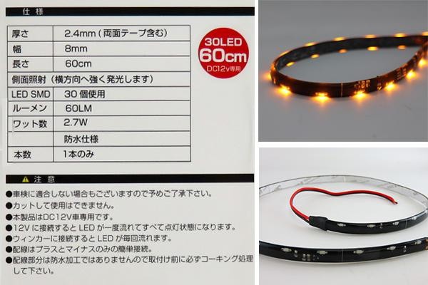 | 仕様 | 右側用、DC12V車専用 LED SMD30個 明るさ:60lm ワット数:2.7W 防水仕様 1本入 |