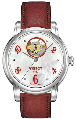 -. Title : Tissot T-Classic Automatic Mother of Pearl Dial Red Leather Ladies Watch T0502071611603
