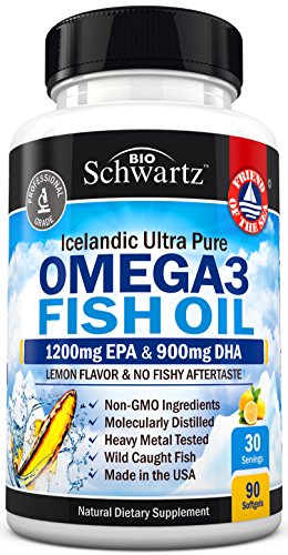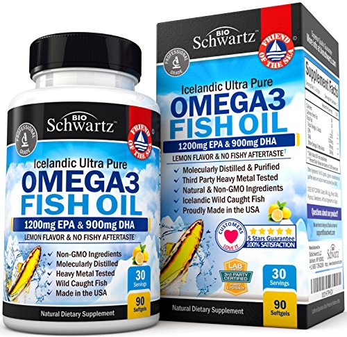 Why Choose BioSchwartz Fish Oil Omega-3 Supplement? BioSchwartz Omega-3 Fish Oil is one of the most potent omega supplements on the market, rich in the Omega-3 Fatty Acids associated with a wealth of health benefits*, including: ? Support Healthy Joint Function* ? May Help Improve Joint Pain and Stiffness* ? Help Reduce Inflammation* ? Improve Cardiovascular Health* ? Promote Normal Blood Pressure Good Circulation* ? Boost Brain Power Memory* ? Helps Strengthen the Immune Nervous Systems* ? Promote Healthy Eyes, Skin Hair* ? Improve Overall Health Mood* Highest Potency Fish Oil Pills Extremely Potent Omega-3 Fish Oil 3000mg, with a total of 2250mg Omega-3 Fatty Acids including 1200mg EPA, 900 mg DHA, and 150mg other Omega-3 Fatty Acids per serving Money Back Guarantee No Questions Asked! Feel the difference or your money back! Most Advanced Fish Oil Supplement with NO Fishy Aftertaste Supercritical extraction ensures our Omega-3 pills provide one of the safest and best forms of Omega-3 Fatty Acids, eliminating harmful oxidation, fishy aftertaste, and unpleasant fishy burps. Rigorously Heavy Metal Tested Third Party Tested to assure the highest quality and purity of our Omega 3 capsules. Natural Pure Formula Contains NO GMOs, artificial ingredients, fillers, binders, preservatives or chemicals. Our formula is FREE of milk, egg, corn, wheat, peanuts and sugar. Doctor Formulated Advanced Formula Our Premium Omega-3 Fish Oil is formulated by doctors and manufactured in the USA in an FDA-approved facility following strict GMP guidelines. Our premium supplements are produced from the finest raw materials and under stringent quality control standards to ensure the highest quality supplement is developed. 0 |