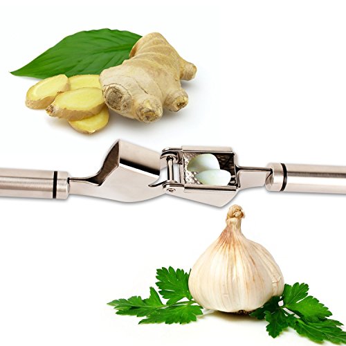PRESS UNPEELED GARLIC AND GINGER. Thanks to the heavy duty construction and ergonomic design, you can easily mince both unpeeled garlic cloves and peeled root ginger. What's more, there is next to no waste: garlic comes out, peel stays in.