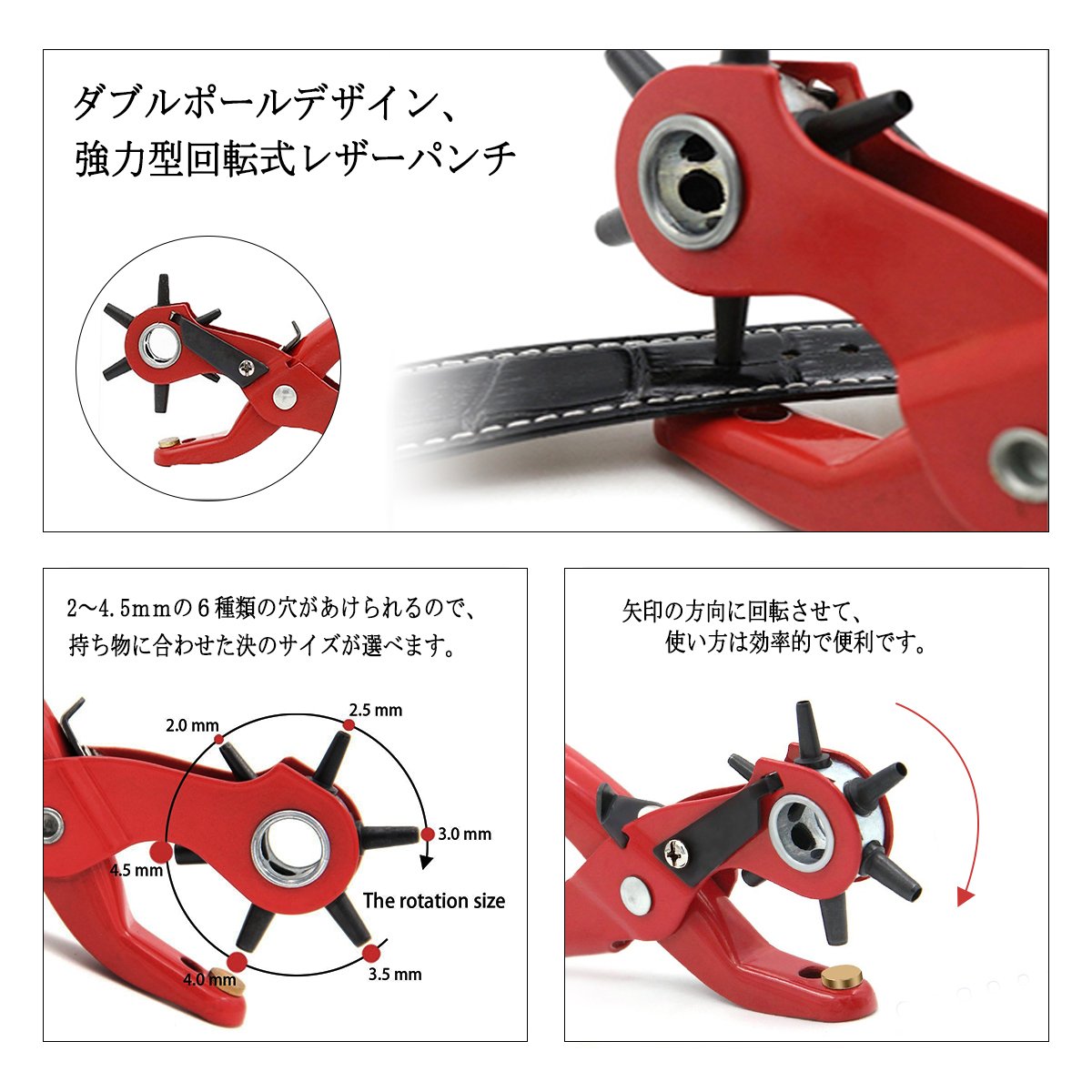 : In addition to belts, you can use it in various places, such as leather craft using leather, sports equipment, drilling of mounts (cardboard etc) for document arrangement.