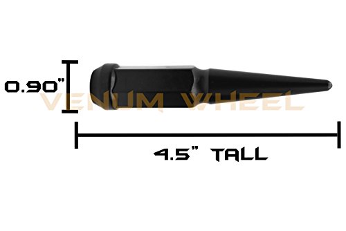24 Pc Chevy Silverado GMC Sierra 1500 Black Spike Lug Nuts 14x1.5 Spiked Metal Lug Nuts Solid 1 Piece 4.5" Tall Acorn Lug Nut + 1 Special Design Key - Aftermarket Wheels Heavy Duty Made in USA