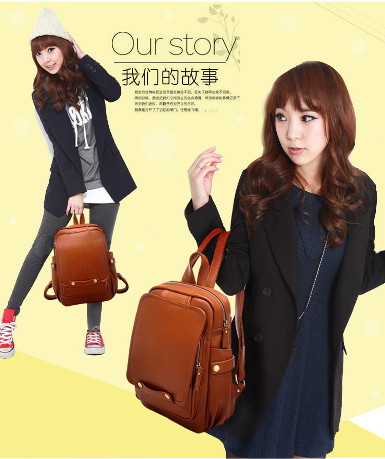 学院风双肩休闲后背包。内部1个拉链袋,2个置物袋