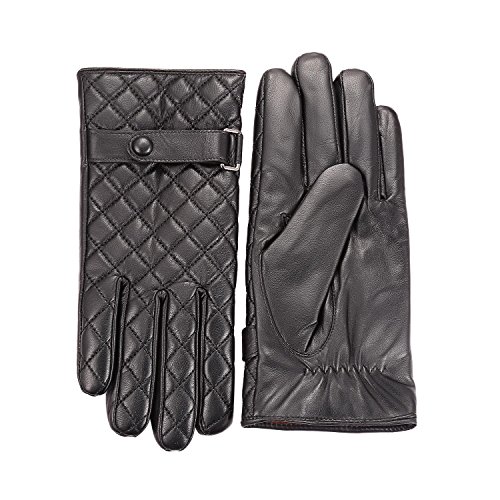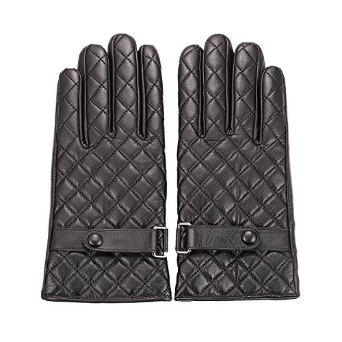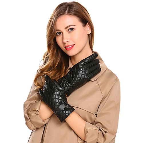 Features 1) Premium lambskin leather material and exquisite workmanship makes these winter gloves durable. 2) Soft, comfy and warm fleece is lined to let you keep warm. 3) Precision touch point control, screens respond to all activity while wearing the gloves. 4) Thick enough to keep your hands warm, yet thin to tuck in your coat pocket or purse with no problems. 5) Snap-fastener design for adjusting the size of gloves. 6) Simple fashion style; Great to match your favorite outfit. 7) Perfect for running, cycling, hiking, driving and outdoor sports activities. 8) The gloves will make a best gift to your wife, daughter, mom, girlfriends, etc.