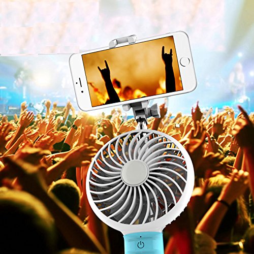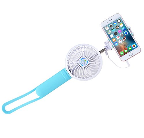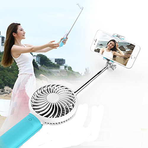 Portable Fan,Findway Mini USB Fan with Selfie Stick and Power Bank for Room Office Outdoor Travel (Blue)