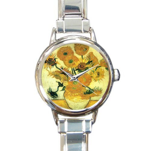 -. Title : Personalized Watch Sunflower by Vincent Van Gogh Oil Paintings Round Italian Charm stainless steel Watch