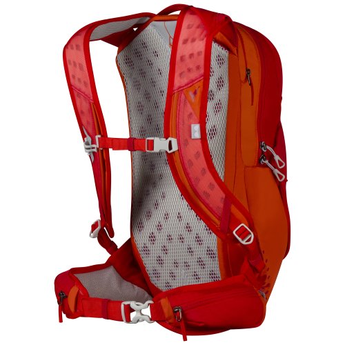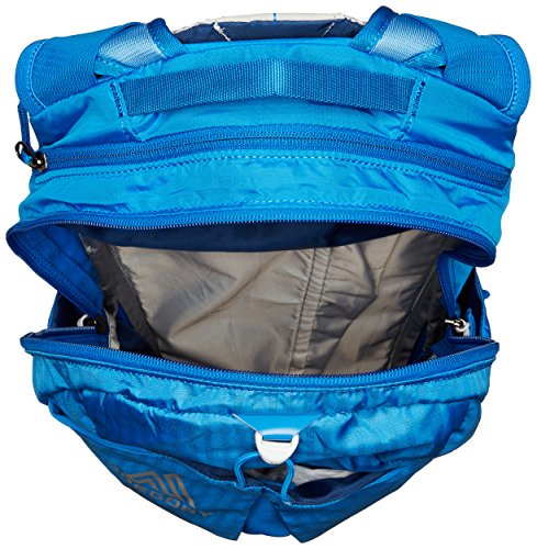 -. Feature : BioSync Suspension technology to keep the pack moving with you for unrestricted motion / Zippered main compartment with two internal mesh organizer pockets / Stretch front pocket with bungee closure / Dual external side pockets / Dual quick-access waist belt pockets