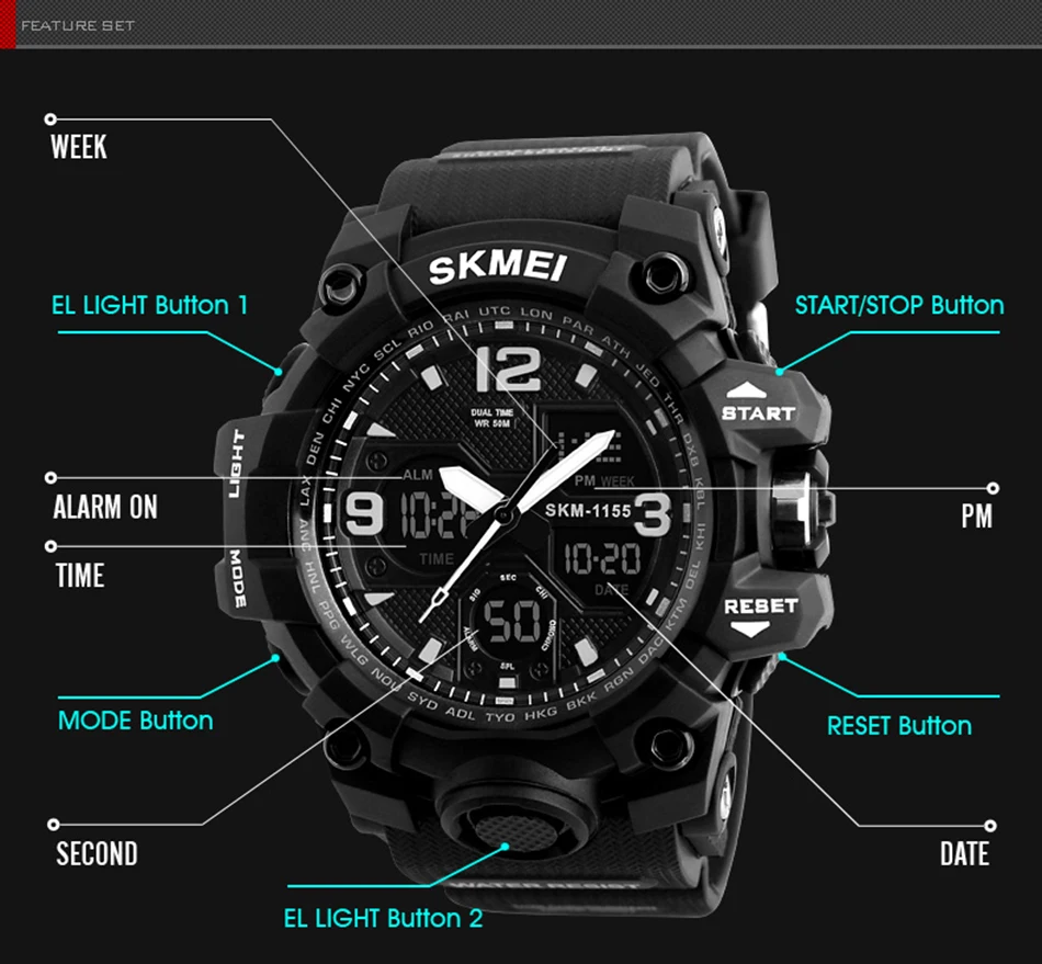 Feature:Complete Calendar,Shock Resistant,Week Display,Water Resistant,Stop Watch,Back Light,Multiple Time Zone,Swim,Alarm