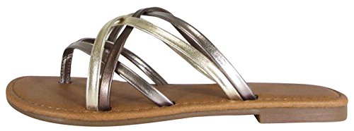 Product DescriptionThis flat sandal from Cambridge Select features crossover straps, thong toe construction, and low, flat heel. Imported.0