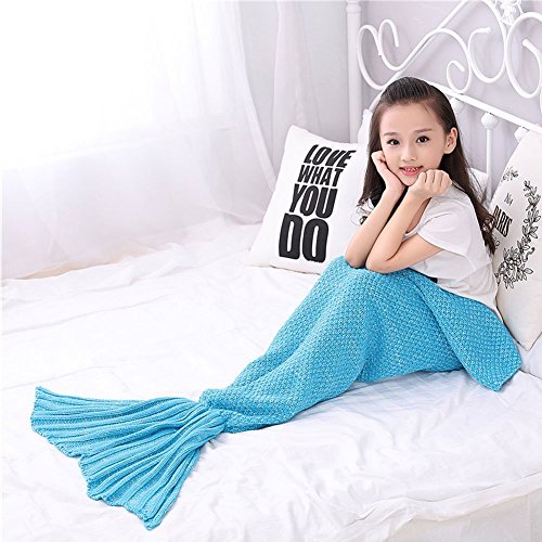 Cunada® Children Crocheted Mermaid Tail Blanket Sleeping Bag Blue