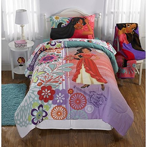 - This comforter features Elena of avalor on a bight back ground
