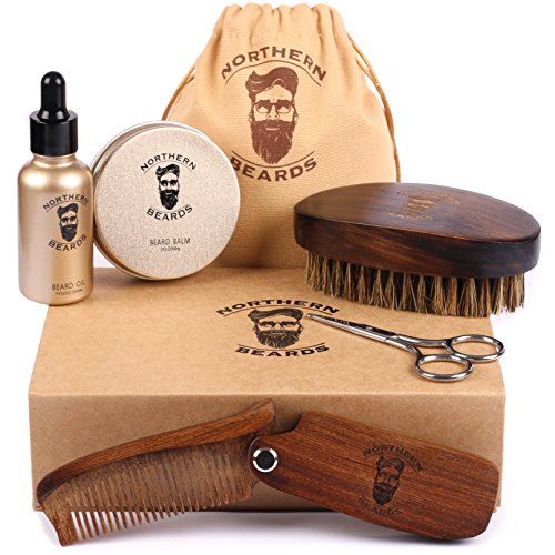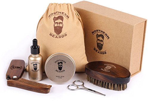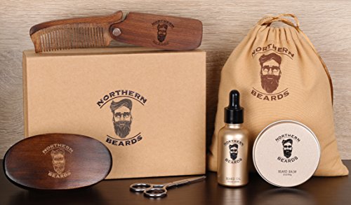 BEARD GROOMING KIT - Bear Brush, Beard Comb, Beard Scissors, Beard Oil and Beard Balm Set included in a Premium Travel Box and Bag. The sandalwood pocket size folding wooden Beard Comb will help you tame your beard.