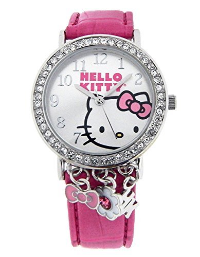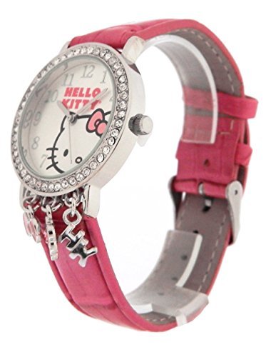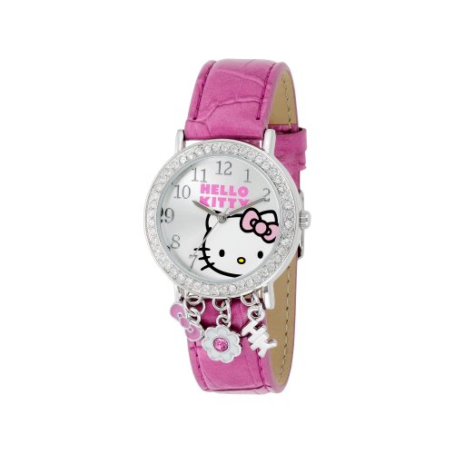 Hello Kitty Womens Charm Watch with Hanging Charms and Pink Leather Band