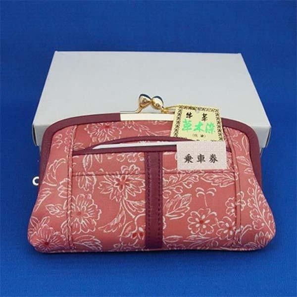 | 内側にもう1つ、がま口があるので親子財布と言われます。表地は牛革を草木染めで染めた生地を使っています。花柄がかわいいです。前面に小さなポケットが4つあり、切符やカードなどを入れておけます!!内側も小銭とお札など分けやすくなっています。近所での買い物などに使うと便利です。 |