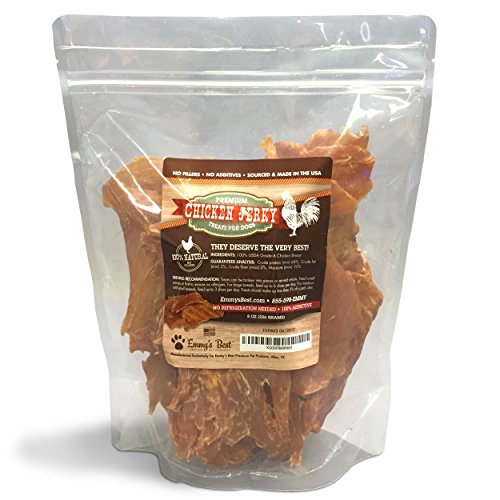 -. Feature : ★ SIMPLY THE BEST TREATS FOR YOUR DOG: Your Pet Knows The Difference Between Treats They Absolutely Love, and those They Simply Tolerate. Our Jerky Treats are Tail Wagging, Jump Up and Down Delicious. Stop Wasting Money on / ★ 100% SOURCED & PRODUCED IN THE USA: USDA Grade A Chicken Breast Sliced and Dehydrated in Small Batches, then Packed up to the Brim with Lots of Love in Every Bag! / ★ NO CHINA SOURCING OR MANUFACTURING: Don't Risk Your Pet's Health with Cheap, Mass-Produced Treats. Give Them the Best-- Emmy's Best! Fair Warning, Your Neighborhood Dogs Will be Jealous, and May Show Up at Your Door! / ★ OUR INGREDIENTS ARE SIMPLE: USDA Grade A Chicken. No Fillers, No Additives, No Preservatives. Your Pet Will Taste the Difference, and You Will Feel Better About Giving Them the Best. / ★ PAW'S PROMISE 100% SATISFACTION GUARANTEE: If Your Pet Doesn't Love Them, Send Back the Empty Bag and We Will Refund Your Purchase. How's That for Standing Behind Our Product?